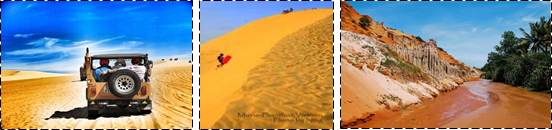 นำท่านชม Fairly Stream คล้าย ๆ แกรนด์แคนยอน ซึ่งเป็นธารน้ำสีแดงอันเกิดจากธรรมชาติเป็นผู้สร้าง เดินชมทัศนียภาพของชั้นดิน สูงลดหลั่นกันไปสลับกับสีสันของดินทรายอย่างสวยงามชายหาดที่เงียบสงบ ท่านจะตื่นตาตื่นใจด้วยความสวยงามกับแหล่งน้ำสีแดง ความยาว 2 กม. นำท่าน เดินผ่านธารน้ำ จากนั้นนำท่านไปทะเลทรายมุ่ยเน่ ( Red and White sand dunces ) ภูเขาทรายสีเหลืองทองอร่ามกว้างไกลสุดสายตา ชมความสวยงามบรรยากาศชายทะเลบนยอดภูเขาทะเลทรายชมวิวทิวทัศน์ ท่ามกลางทะเลทรายขาว ท่านสามารถมองเห็นบึงบัวอันสวยงามเต็มไปด้วยดอกบัวสีแดง และท่านสามารถเล่นสไลด์เดอร์บนสันทรายและนั่งรถรถจิ๊บขึ้นไปที่ทะเลทราย ไม่รวมในค่าทัวร์ ) |